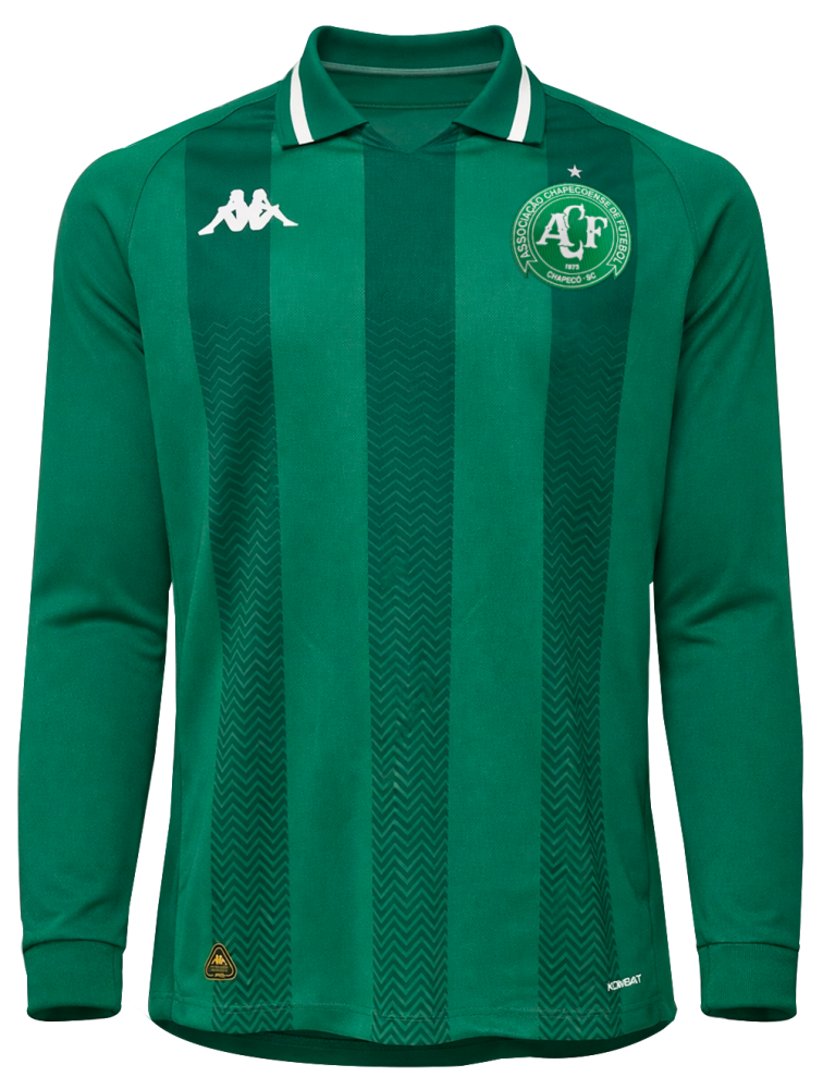 Produzida em tecido sintético de alta performance (100% poliéster), a camisa oferece leveza, respirabilidade e ótimo caimento. O modelo conta com gola polo, mangas longas com punhos ajustados e acabamento premium. O escudo da Chapecoense em material especial, o logo Omini da Kappa e o selo da linha Kombat reforçam a autenticidade do uniforme oficial.